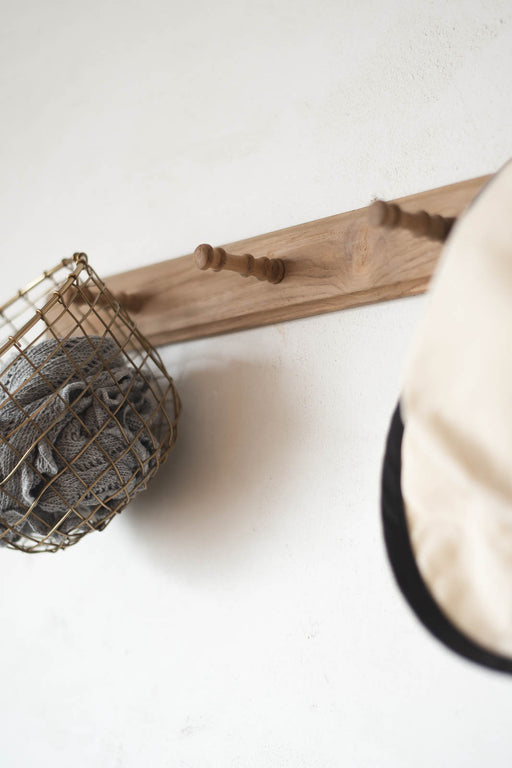 詳細を全部見るMemor Wall Rail L - 5フック | 壁面を美しく整える、存在感のあるロングタイプのウォールフック ヴィンテージの趣と手仕事の温もりを感じさせる、5フックタイプのウォールレール。均等に並んだフックと、リサイクルチークの豊かな木目が、壁面に心地よいリズムと奥行きを生み出しま...