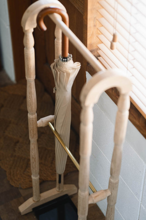 詳細を全部見るLaund Umbrella Stand | 省スペースで美しく収まる、スリム傘立て 限られたスペースにもすっと収まり、玄関の景色を整えてくれるスリムな傘立て。ヴィンテージ家具を思わせる端正な佇まいと、やわらかな曲線を描くフレームが、空間にやさしい温もりを添えます。傘を「収納する」ためだ...