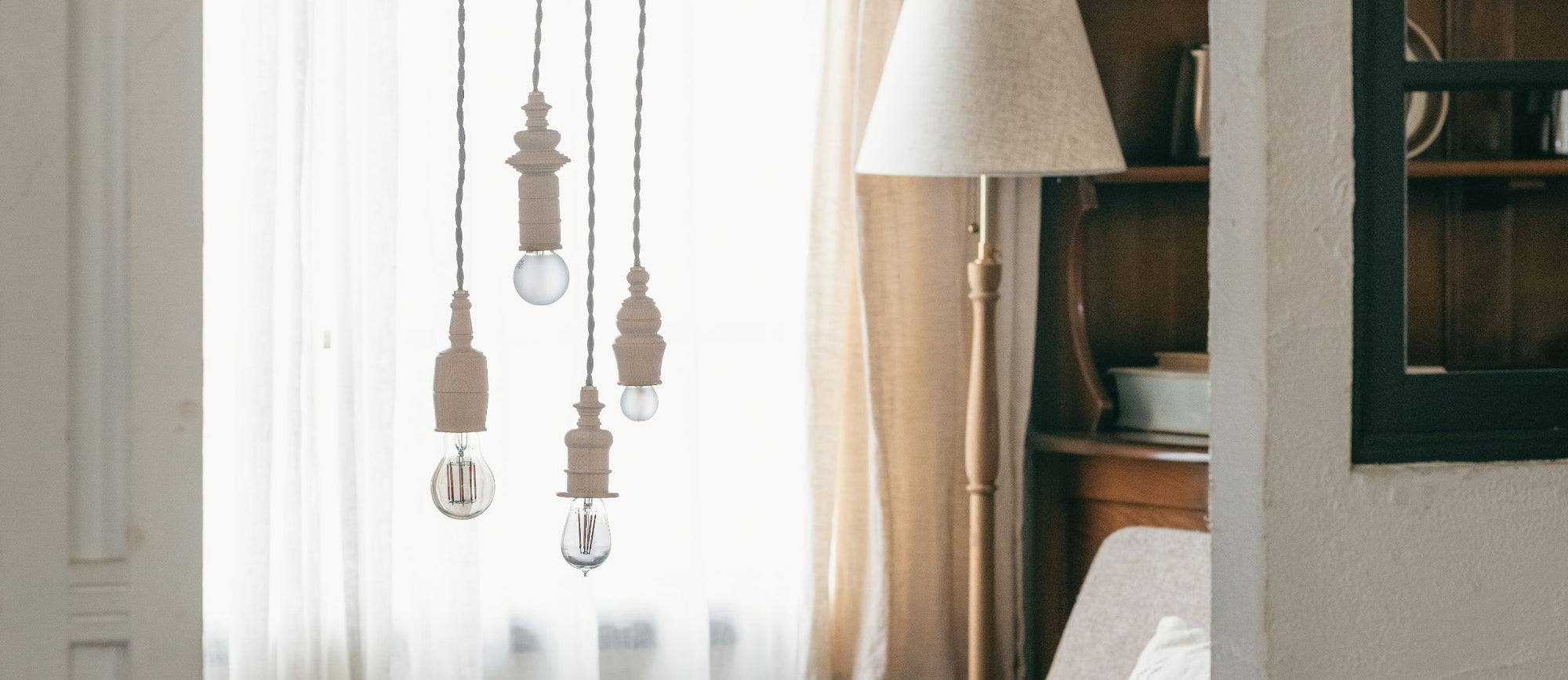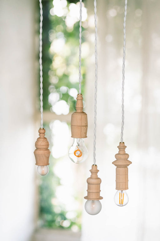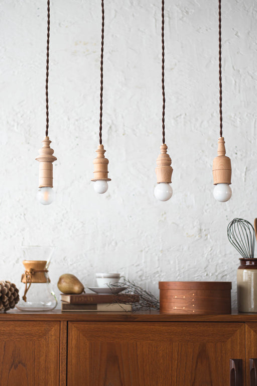 Atelier ペンダントライト | たくさん並べたくなる、木の温もりを感じるペンダントライト 細かなターニング加工で仕上げた、立体感のあるビーチ材のペンダントライト。シェードを持たない、電球がそのまま見えるつくりだからこそ、灯りそのものの存在感が引き立ちます。取り付ける電球によって表情...
