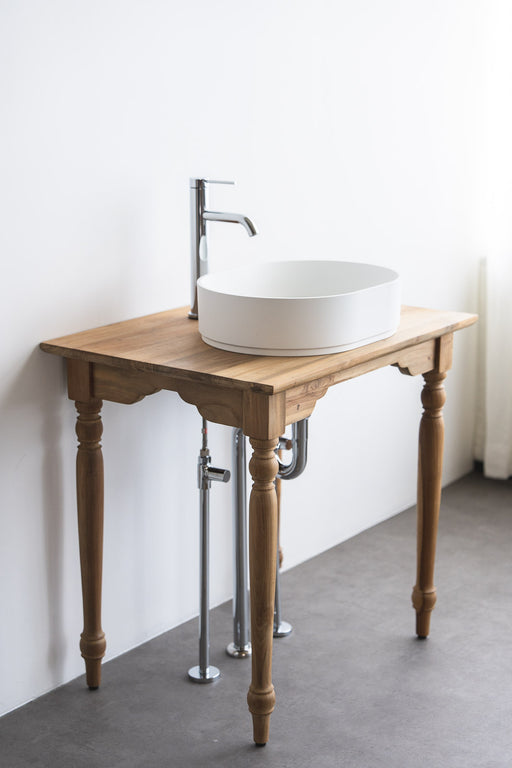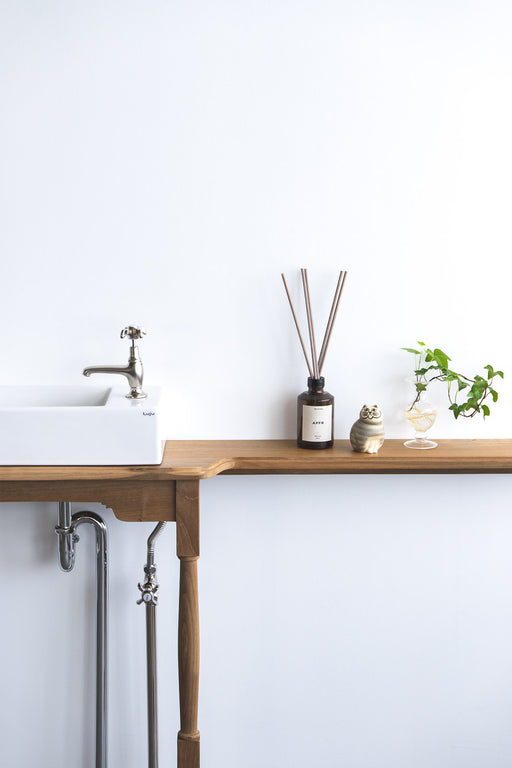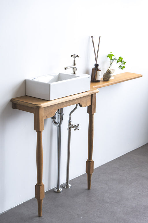 元の価格 ¥212,685 - 元の価格 ¥222,563元の価格¥212,685 - ¥222,563¥212,685 - ¥222,563現在の価格 ¥212,685テーパーエッジと繊細な脚が引き立つ、軽やかな佇まいの洗面カウンター ゆるやかなテーパー仕上げを施した天板に、ヨーロッパヴィンテージ家具に着想を得た細身のターニングレッグを合わせた、軽やかなフォルムが美しい洗面カウンター。脚部や天板、幕板にさりげなくカーブやターニングを取り入れることで、控...