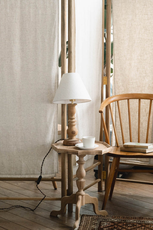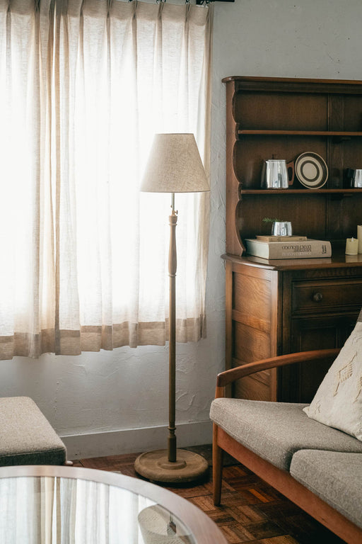 詳細を全部見るCoal Floor Light | 自分の「好きな場所」に、静かな光を。コールフロアライト 英国ヴィンテージに着想を得たターニングレッグと、ベージュのファブリックシェード。凛とした細身の佇まいで、いつもの部屋に「落ち着き」と「奥行き」を灯すフロアライトです。 天井照明だけだと、光が均一...