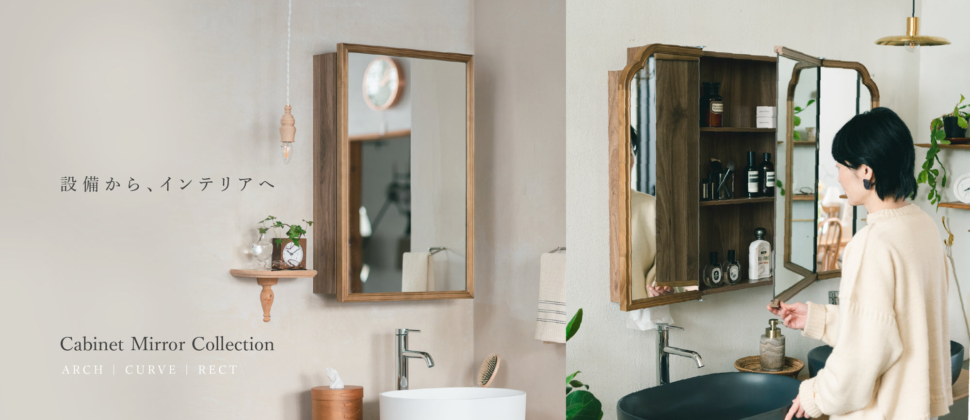 詳細を全部見るワイドな3ドアでたっぷり収納、空間を包み込む曲線キャビネットミラー 四方に丸みをもたせたフレームが美しく広がる「Wood curve(ウッドカーブ)3ドアキャビネットミラー 1150」。空間の主役になる、ダイナミックな3面鏡キャビネットです。 ※こちらはWood arch 1150です。...