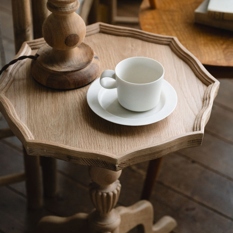 詳細を全部見るOak Oval Side Table | 曲線美と木の温もりを纏った、上質なオークのサイドテーブル 「オークサイドテーブル オーバル」は、脚部の優美な曲線が印象的なサイドテーブルです。クラシカルなヴィンテージスタイルから着想を得た佇まいは、どこかノスタルジックで空間にやさしく溶け込みま...