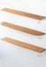 Teak shelfシリーズは、無垢のチーク材を使用した、シンプルなウォールシェルフです。取り付け金具が見えない仕様になっており、まるで一枚の木の板が壁にそっと溶け込んでいるかのような、洗練されたデザインが特徴です。