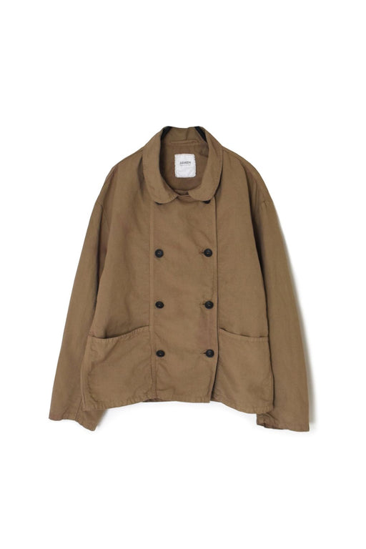 ARMEN | LINEN/COTTON PLAIN OVERDYE ROUND COLLAR DOUBLE JACKET