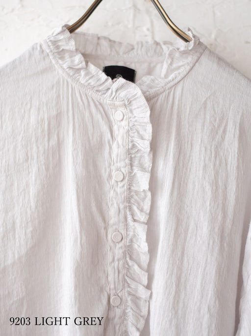 maison de soil | TWILL COTTON KHADI PLAIN FRILL COLLAR SHIRT WITH MINI PINTUCK