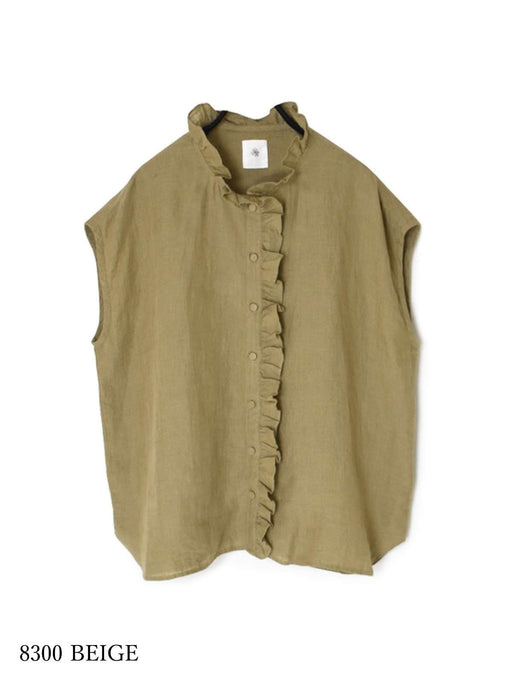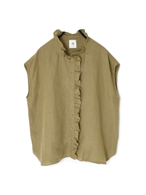 maison de soil | YARN DYE AUTO LOOM 60s LINEN PLAIN NO SLEEVE FRILL COLLAR SHIRT