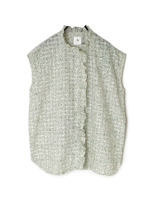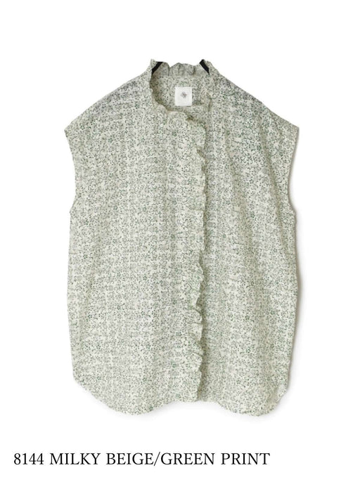 maison de soil | POWER LOOM COTTON DOBIE CHECK ARABESQUE SCREEN PRINT NO SLEEVE FRILL COLLAR SHIRT
