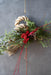 深みのあるグリーンに、赤の水引きや飾り紐、赤い実が添えられ、正月らしい華やかさを演出しています。かっこよさの中に、思わず微笑むかわいらしさも。