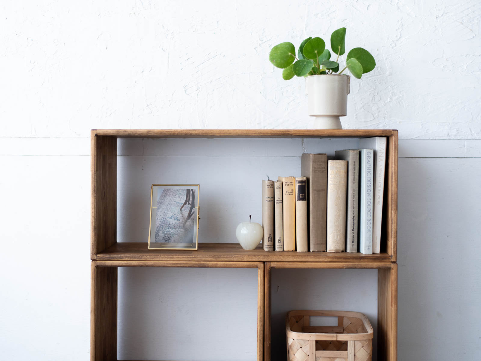 リビング、書斎、ベッドルーム、子供部屋など、あらゆる場所に自然と馴染むシンプルなデザイン。カラーは木のぬくもりを感じるミディアムブラウンです。流行や季節感を問わないベーシックで穏やかな佇まいなので、インテリアスタイルを問わず、幅広いテイストの小物や家具を組み合わせて、タイムレスにお使いいただけます。