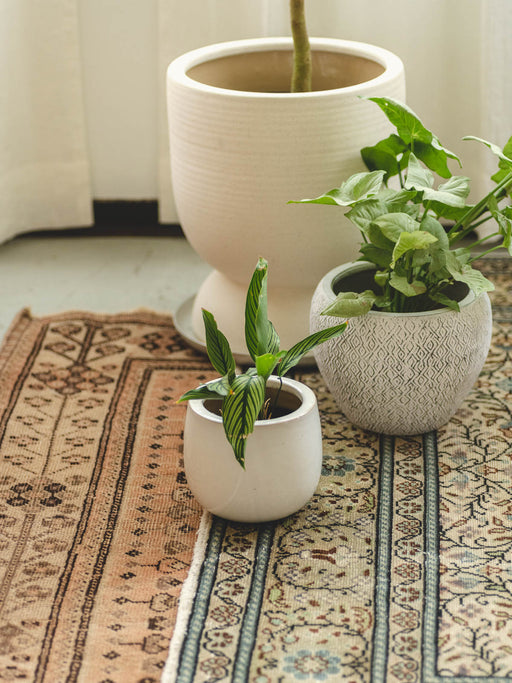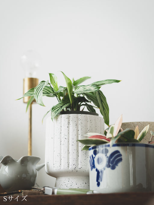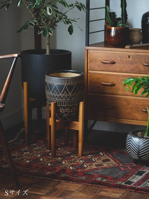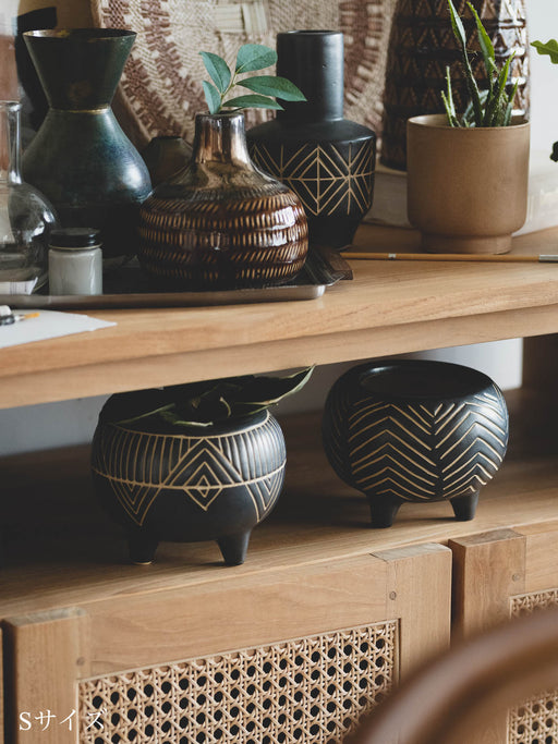 アフリカの民族紋様をイメージした「african coco(アフリカンココ)」シリーズの花器や植木鉢。ひとつあるだけでも絵になるけれど、複数置くほどに奥行きが生まれて世界が広がり、気持ちは海の向こうへ。