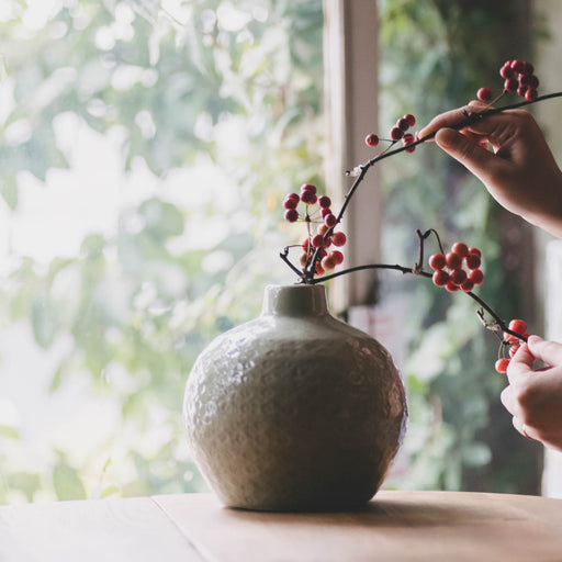 シンプルモダンなシルエットの陶器ベース すっきりとしたカラーの陶器製の花器。立体的な造形に遊び心があり、オブジェとして置いているだけでも絵になる存在感があります。 ざらりとした仕上げにこだわり、マットな釉薬で仕上げています。職人により手作業で作られているので1点1点風合いが異なります。ヴ...
