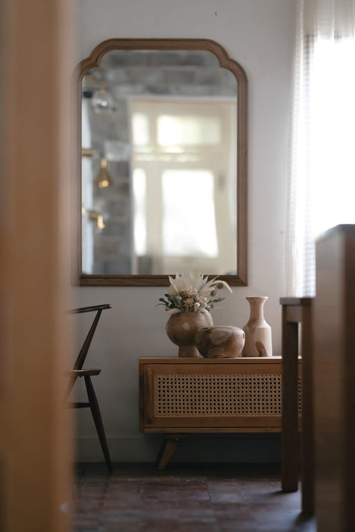 すでに使い込まれたような佇まいと木の表情は、ヴィンテージやモロカンスタイルにはもちろん、クリーンでモダンなインテリアに合わせたBOHOスタイルのアクセントにもなります。ナチュラルな雰囲気にモダンなデザイン要素を合わせたフォルムは、空間の印象をランクアップさせてくれます。