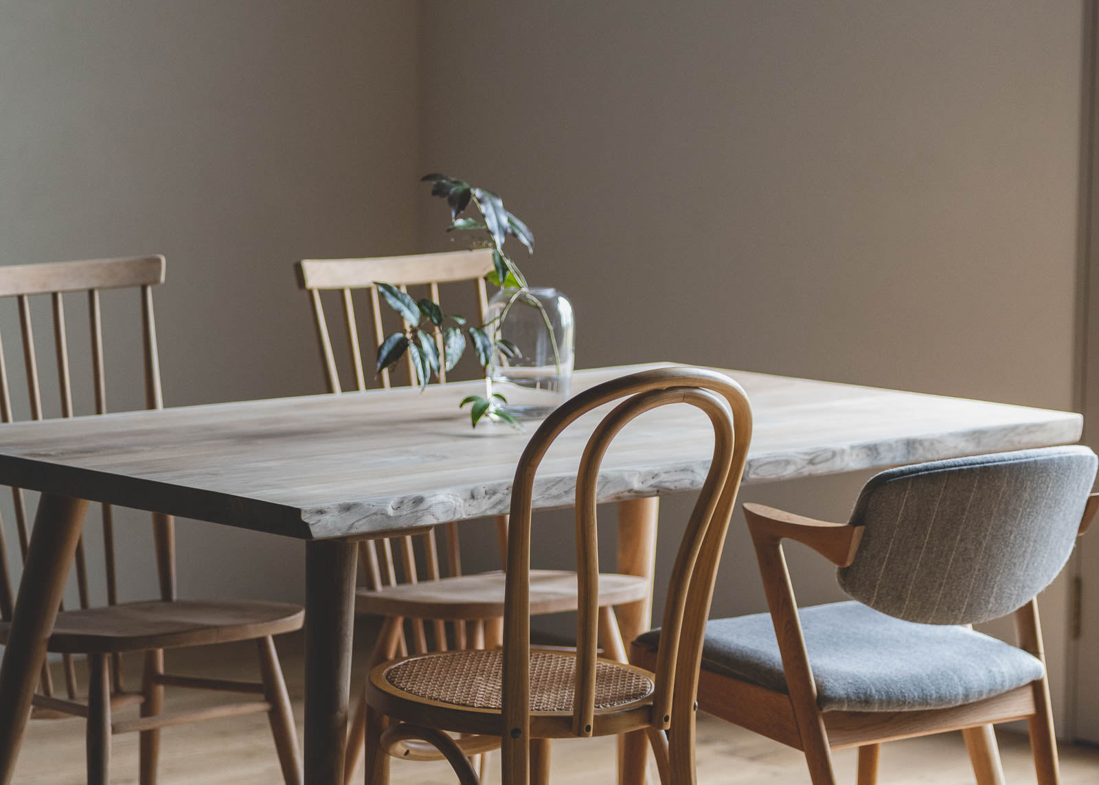 お引越しやご新築などの新生活にダイニングテーブルをお探しの方に。あえて残した耳(樹皮)・さらりとスムースな木肌の質感・美しい木目 が魅力の「Coupeダイニングテーブル」をご紹介します。