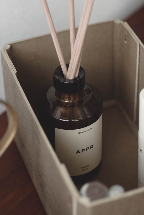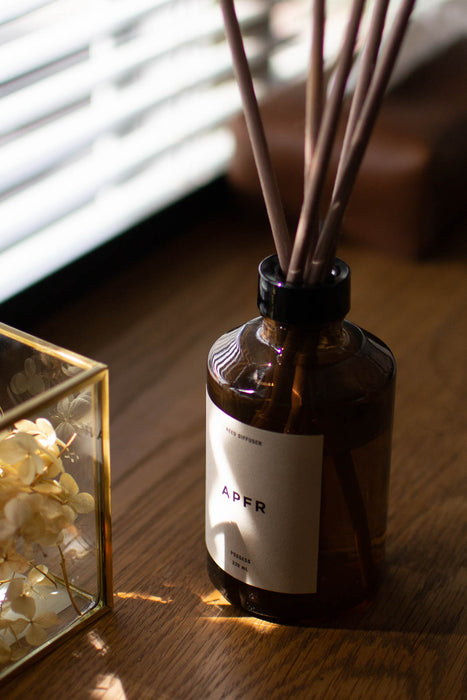 APOTHEKE FRAGRANCE's reed diffuser is an item that gently envelops the space with fragrance along with a sophisticated design. The brand logo has been renewed to "APFR," and it has been reborn with a more refined package design. It is simple yet has a presence, blending beautifully into the interior.