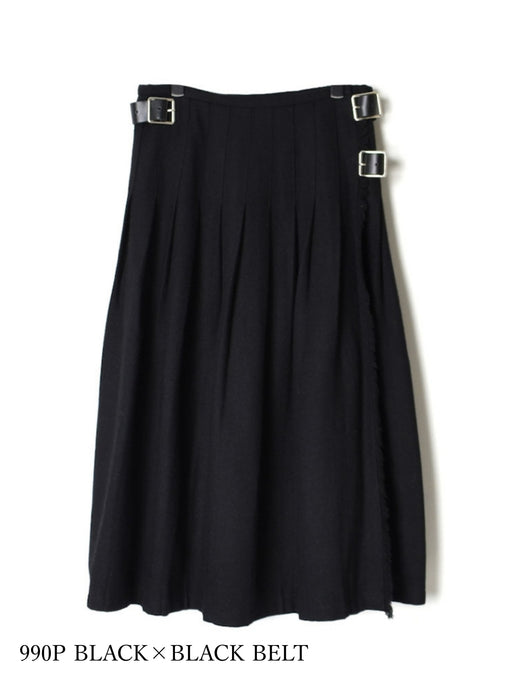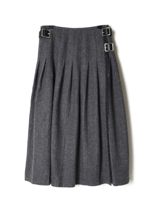 O'NEIL OF DUBLIN | HEAVY TWEED LOW WAIST PLEATS WRAP SKIRT LENGTH 80cm (WITH PIN)