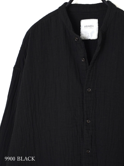 ARMEN | DOUBLE GAUZE PLAIN UTILITY BANDED COLLAR LONG SHIRTS