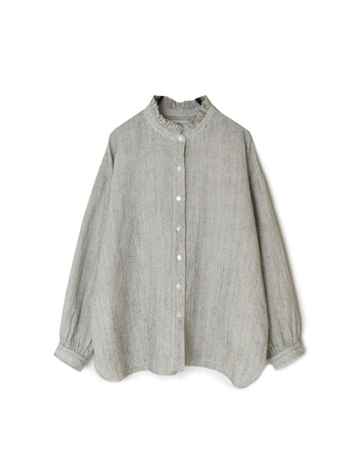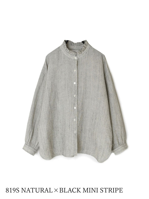 SOIL | WOOL LINEN STRIPE FRILL COLLAR SHIRT