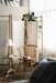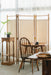 The linen cotton fabric screen partition with its rustic atmosphere evokes a nostalgic European ambiance through the well-worn wood textures aged over time.