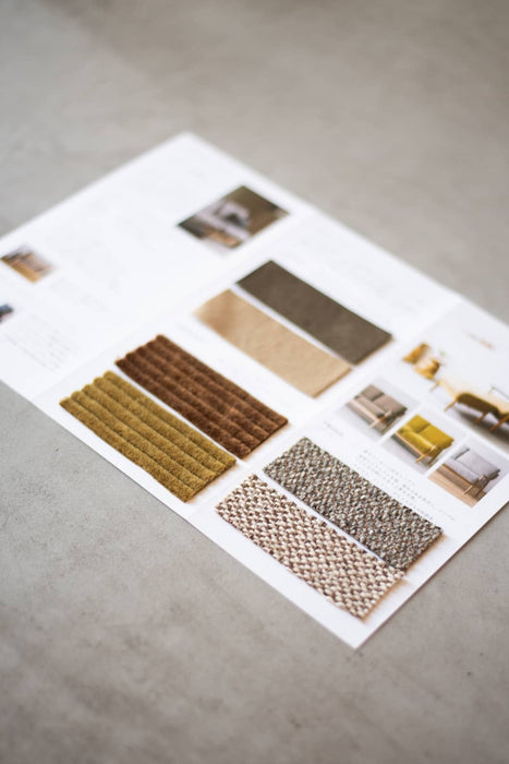 This is a domestically produced recycled fabric made by reusing fibers discarded at the factory. It has a deep color tone and an elegant look that never gets boring. The simple, high-quality texture blends well with any space.