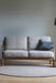 The "Flow" series features sleek arms and a lattice-style back. The beautiful wooden frame is finished simply with slim lines. This sofa boasts a timeless basic design reminiscent of vintage furniture.
