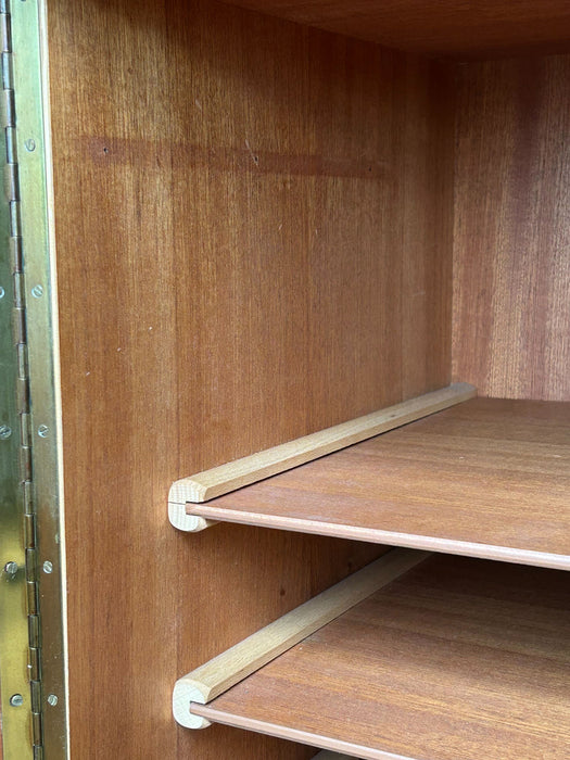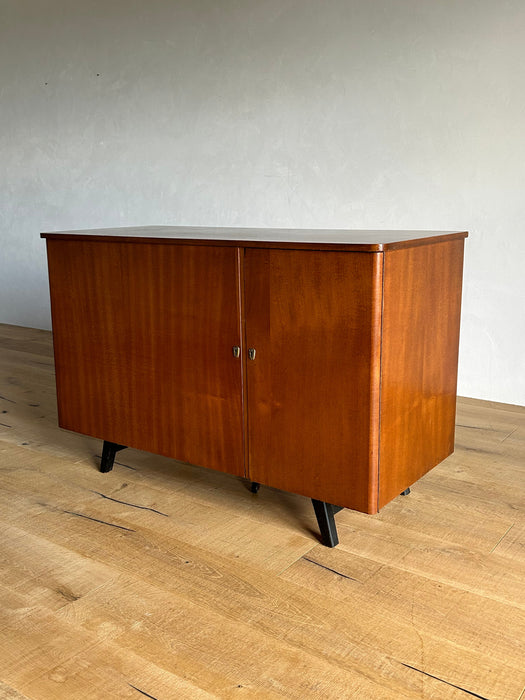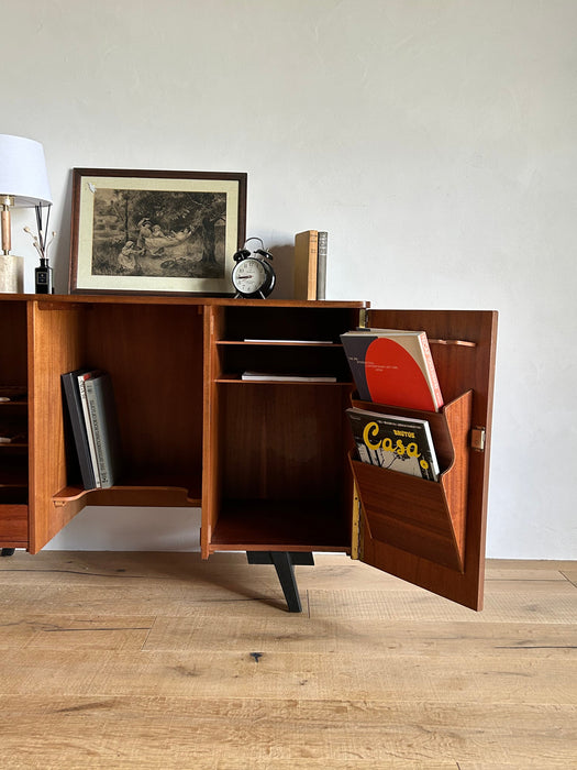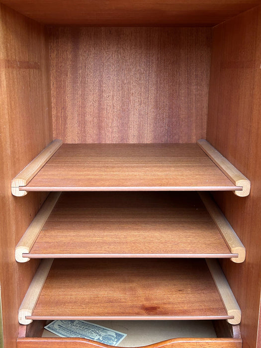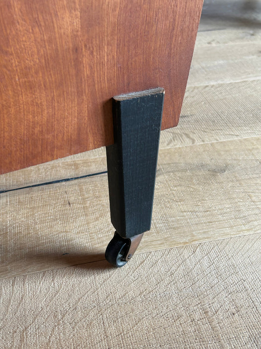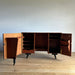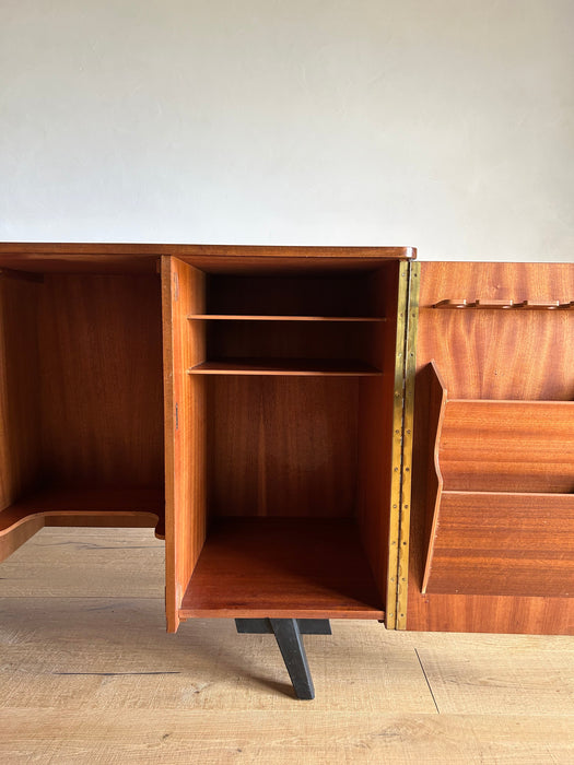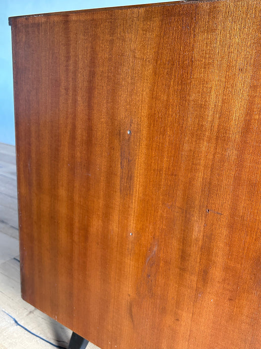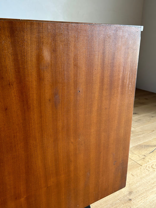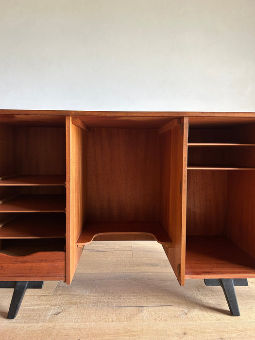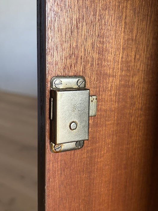 At first glance, it looks like a sideboard cabinet, but when you open both doors, it quickly transforms into a multifunctional desk designed for ease of use. Although it is an unbranded piece, it is a British-made transformed cabinet desk influenced by Scandinavian furniture of the time, with a solid construction. When you open the doors, you can immediately focus on your work, and when you close them, you can instantly tidy up, making it an ideal cabinet desk for living rooms and similar spaces. Please inquire for detailed dimensions and opening measurements.