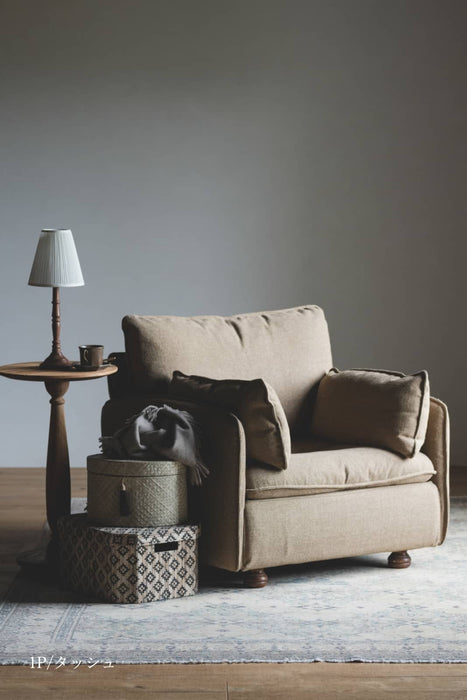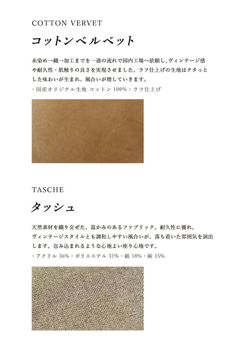 A warm fabric blended with natural materials. It is durable and has a texture that pairs well with vintage styles, creating a calm atmosphere. Please experience the enveloping comfort of the seating.