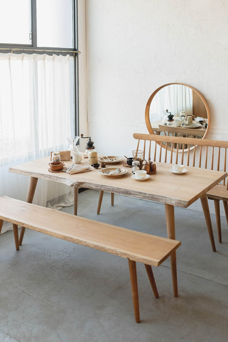 本シリーズに使用している木材は、通常は使用されにくいワイルドな耳をあえて残したりと自然のままを活かした作りとなっております。 節や穴もそのままを使用しているため、ひとつひとつ個体差がございますが素材の特徴となりますのでご理解ください。 -