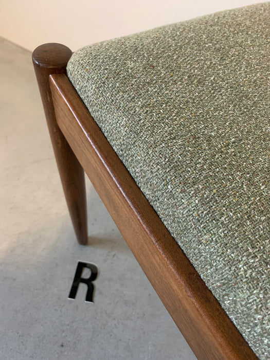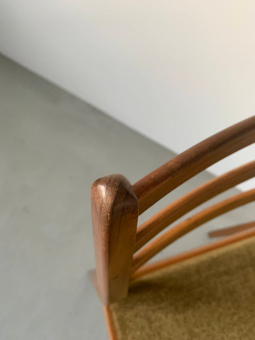 This is the most popular type among our G-PLAN chairs. The seat has been reupholstered with newly selected fabric. You can choose from four types: [A], [N], [T], and [R]. Each fabric contrasts beautifully with the frame, and the three curved wood slats on the back not only look elegant but also provide a comfortable, enveloping seating experience. They also match well with Scandinavian design tables. *Set of 4 chairs in the same color.