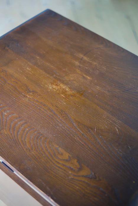 クラシカルなデザインが魅力の「オールドコロニアル」シリーズです。シンプルな佇まいを保ちながらも、モダンになりすぎない絶妙なバランスが特徴。幕板のないすっきりとしたデザインながら、天板下にはスチール製の補強が施されており、見た目以上にしっかりとした強度を備えています。