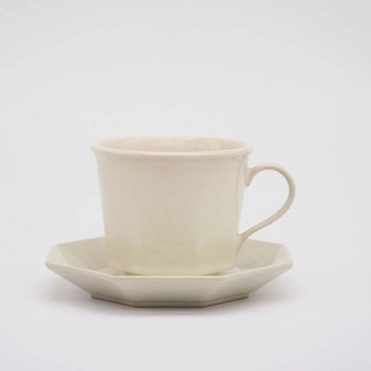 オクタゴナルカップ&ソーサーとマグだけの特別な白。艶があり温かみのあるやや黄身がかった白の釉薬を使いました。よりフレンチアンティークの白い器の色に近い印象です。