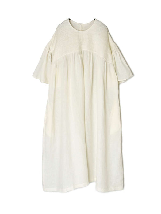 maison de soil | YARN DYE AUTO LOOM 60s LINEN PLAIN BACK OPENING PULLOVER DRESS WITH MINI PINTUCK