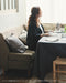 440mmの座面高は一般的なダイニングテーブル(H710mm前後)と組み合わせてちょうど良い設計にしています。390mmの座面高はお部屋に圧迫感を出したくない方におすすめ。H650mm程度の低めのテーブルに合わせやすいようにお作りしています。クッションなどを置いてくつろぎを高め、リビングダイニング用としてもお使いいただけるソファシリーズです。